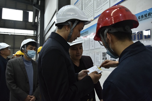 張副市長一行深入天億新材料生產(chǎn)車間,詳細(xì)了解生產(chǎn)經(jīng)營和安全清單責(zé)任制落實(shí)、安全設(shè)施設(shè)備以及標(biāo)準(zhǔn)化班組創(chuàng)建情況。