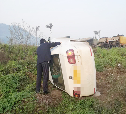 3月20日上午8時許,宜賓江安縣工業(yè)園區(qū)外,一輛轎車突然失控翻滾下公路。前去江安縣開會剛好路過此地的宜賓天原集團海豐和銳黨委副書記、副總經(jīng)理、分工會主席馮應(yīng)乾,駕駛員曹勇和其他幾位過路的群眾立即對車上的5人進行施救。