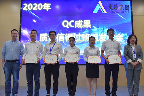 5月25日,天原集團(tuán)召開(kāi)2020年QC成果及質(zhì)量信得過(guò)班組現(xiàn)場(chǎng)發(fā)布會(huì)。天原集團(tuán)紀(jì)委書(shū)記、工會(huì)主席王明安及相關(guān)職能部室負(fù)責(zé)人出席發(fā)布會(huì)并擔(dān)任評(píng)委。各QC小組成員代表及發(fā)布人共計(jì)80余人參加發(fā)布會(huì)。