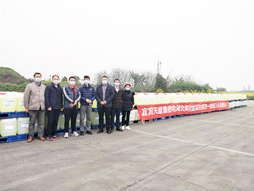 在市委市政府的統(tǒng)籌安排下,天原集團(tuán)不僅為宜賓市的各區(qū)縣、醫(yī)院、學(xué)校捐贈(zèng)次氯酸鈉消毒原液,有力保障市內(nèi)防控工作,同時(shí)還向周邊市州、單位捐贈(zèng)近300噸,向湖北黃岡捐贈(zèng)85噸,給湖北人民送去了四川友愛。來自南充、資陽(yáng)等周邊市州、單位的感謝信紛至沓來,《人民日?qǐng)?bào)》頭版、中央電視臺(tái)、新華社、共青團(tuán)中央官微、四川電視臺(tái)、《四川日?qǐng)?bào)》、中國(guó)氯堿網(wǎng)、《宜賓日?qǐng)?bào)》等各大新聞媒體紛紛報(bào)道天原集團(tuán)積極履行社會(huì)責(zé)任的善舉,充分彰顯了國(guó)企使命擔(dān)當(dāng)。