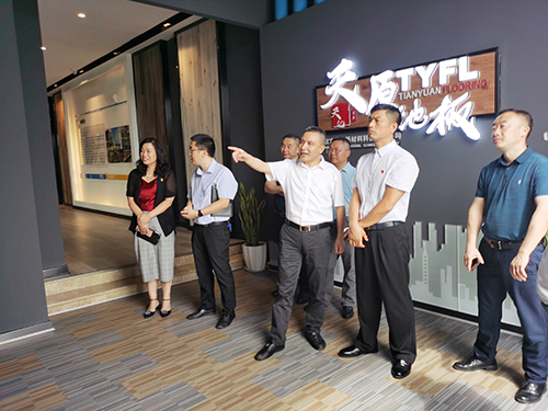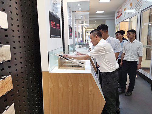 謝光永董事長一行先后參觀了天億新材料PVC-0管道展廳及天原地板展廳,詳細了解天億新材料產業(yè)布局,技術研發(fā),產品生產和推廣等具體情況。