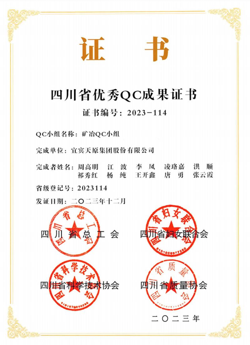 礦冶QC小組“磷尾礦資源化利用技術(shù)的研究”榮獲四川省優(yōu)秀質(zhì)量管理小組活動(dòng)獎(jiǎng)