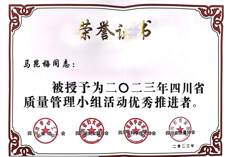 四川省質(zhì)量管理小組活動(dòng)優(yōu)秀推進(jìn)者