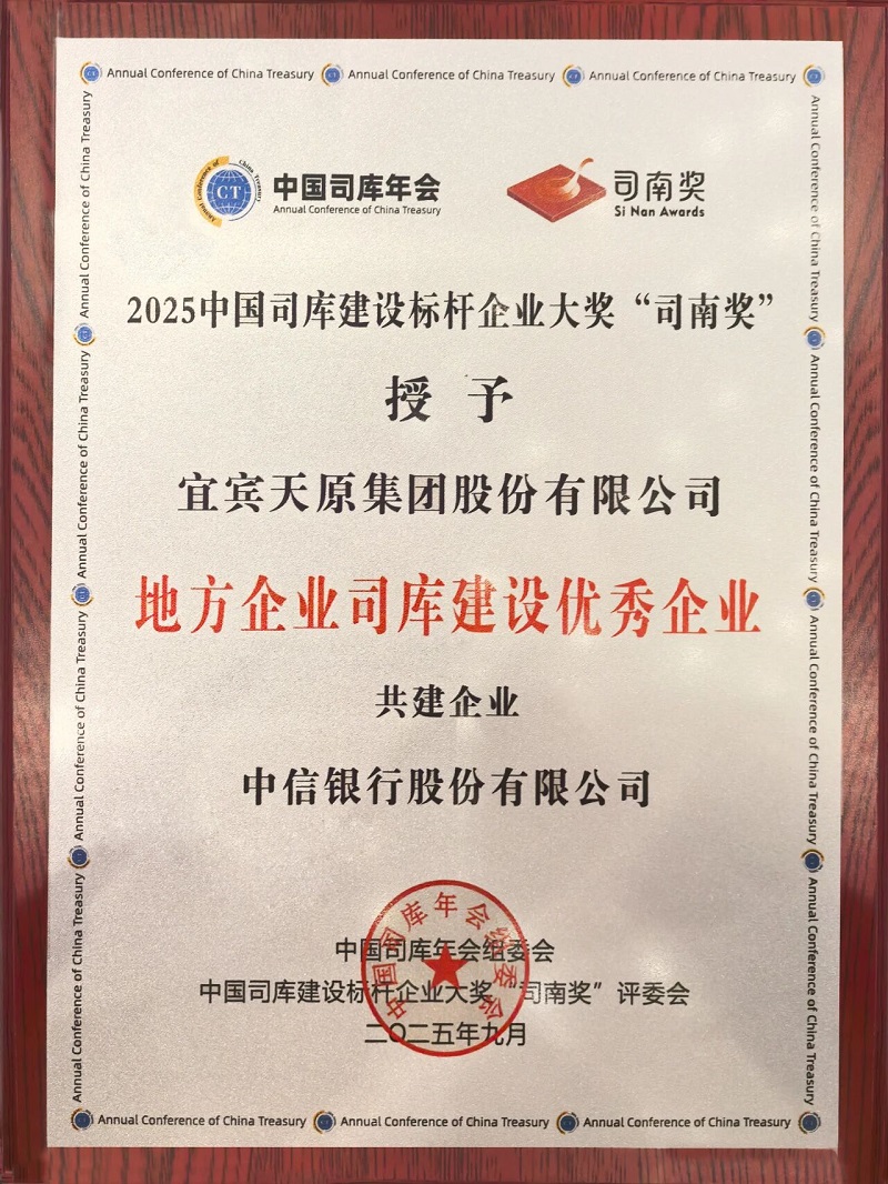 近日,2025中國司庫建設(shè)標(biāo)桿企業(yè)大獎“司南獎”評選獲獎名單公示,天原集團(tuán)榮獲2025中國司庫建設(shè)標(biāo)桿企業(yè)大獎“司南獎”——“地方企業(yè)司庫建設(shè)優(yōu)秀企業(yè)” 。